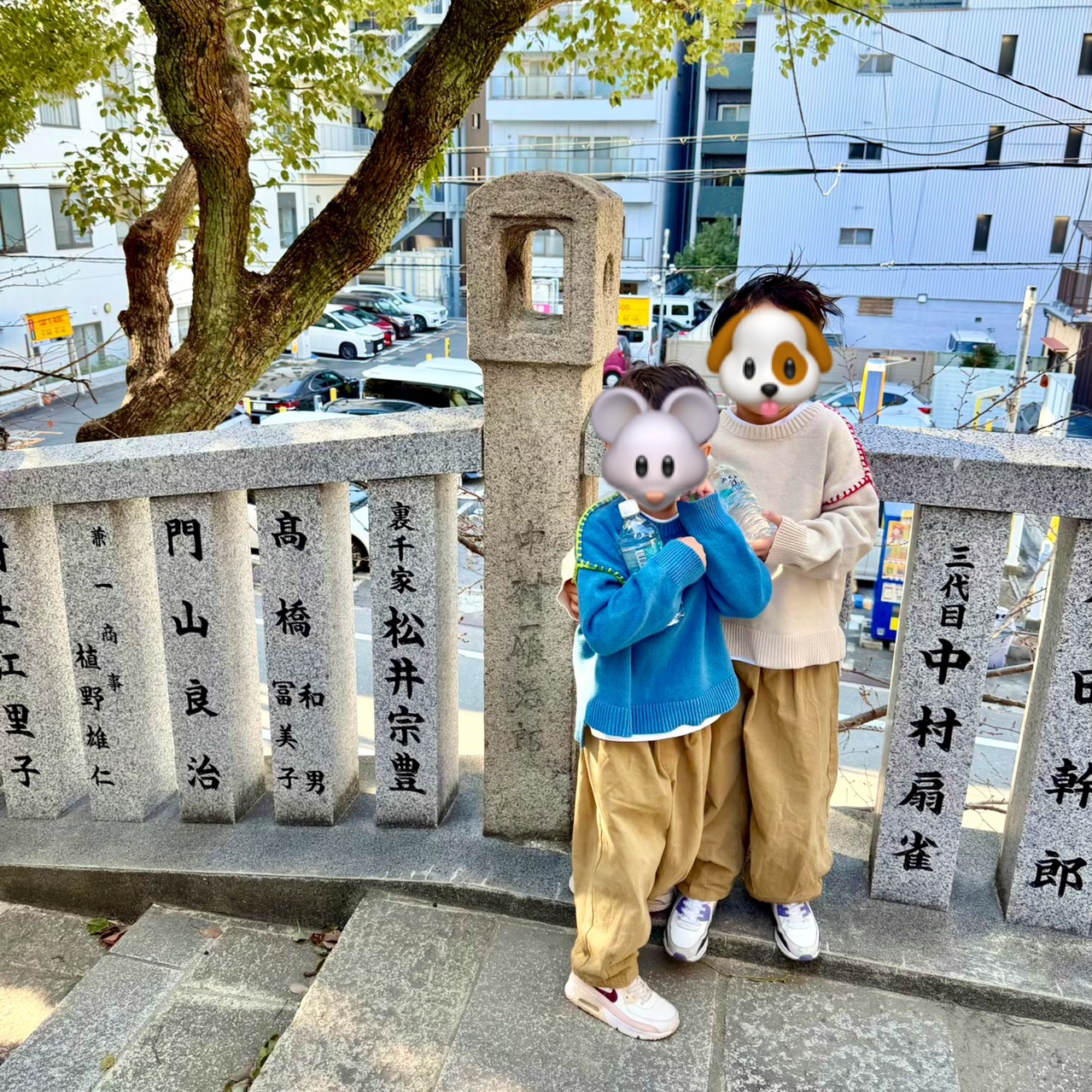 普段、お稽古やお詣りに訪れる際は相合坂の方に連れて行く事がないので、子供達が物心ついてからは初めて玉垣石を見せに行きました。